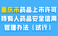 现将《重庆市药品上市许可持有人药品安全信用管理办法(试行)》印发给你们,请遵照执行。